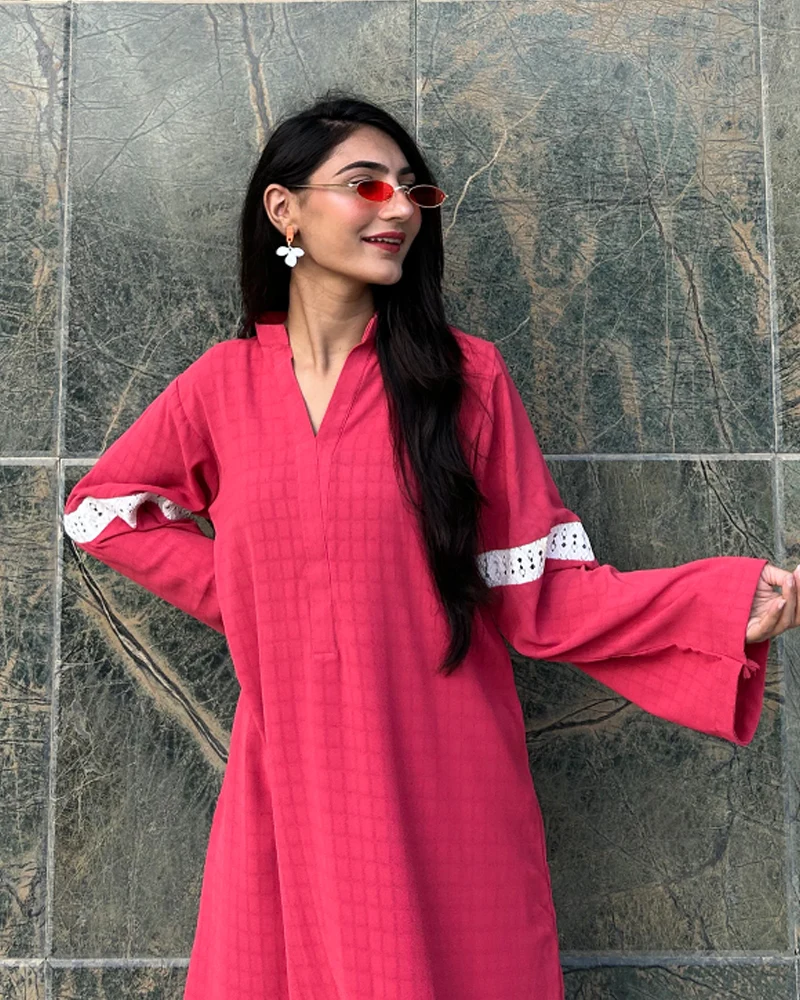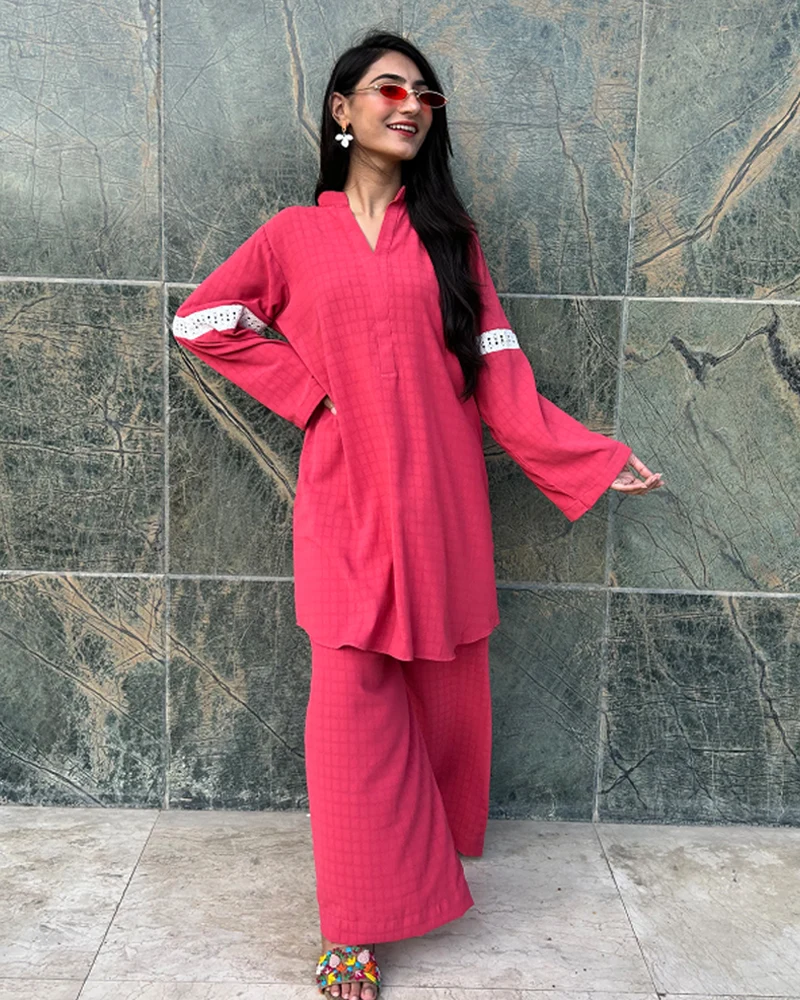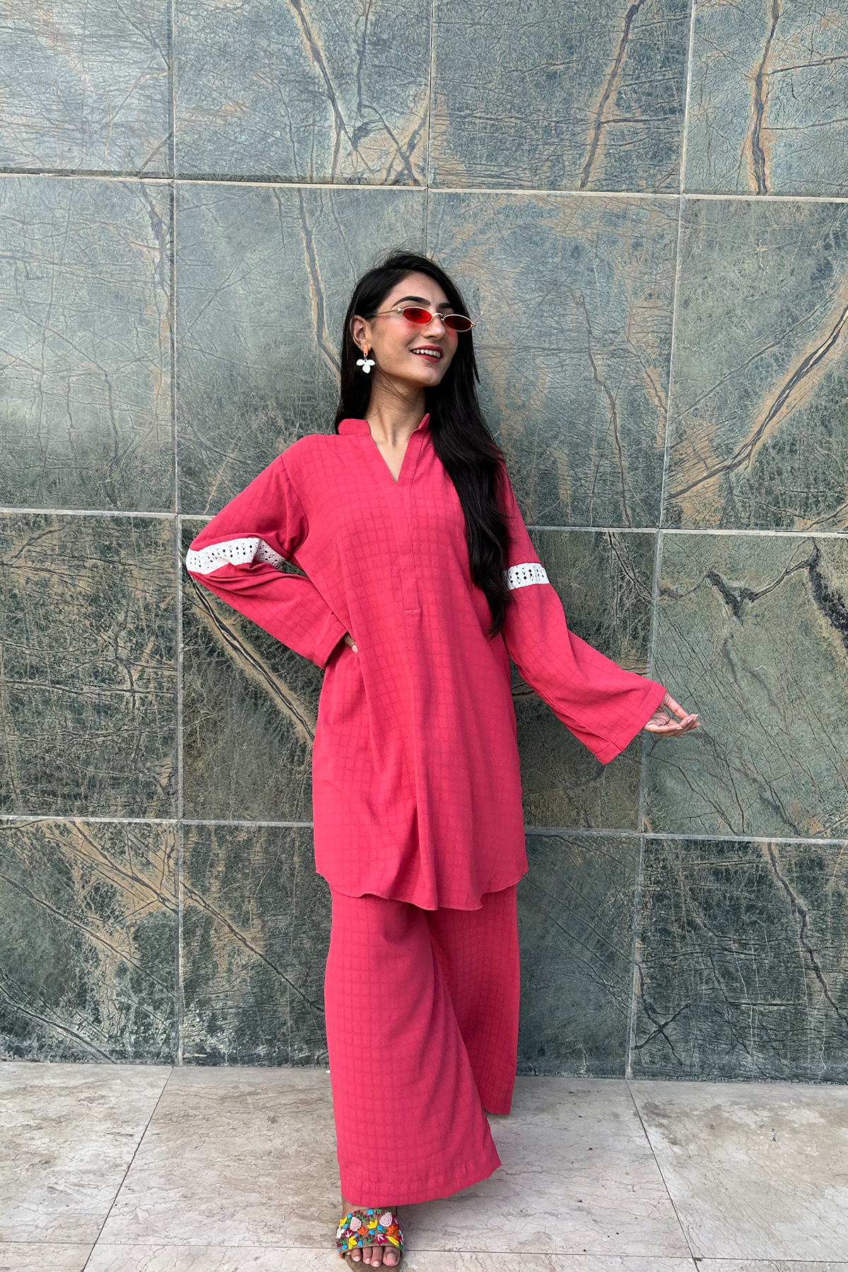 Make a bold yet beautiful statement with our dark pink Cambaric coord set. 💖🌺