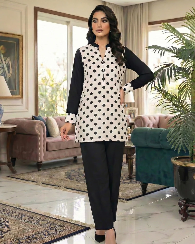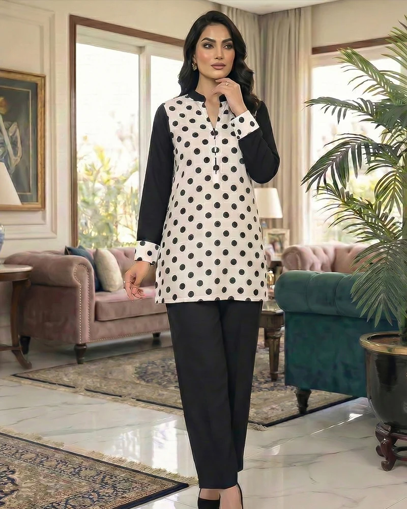 The lightweight and breathable nature of lychee georgette makes this ensemble an ideal choice for year-round wear, blending comfort with understated charm.