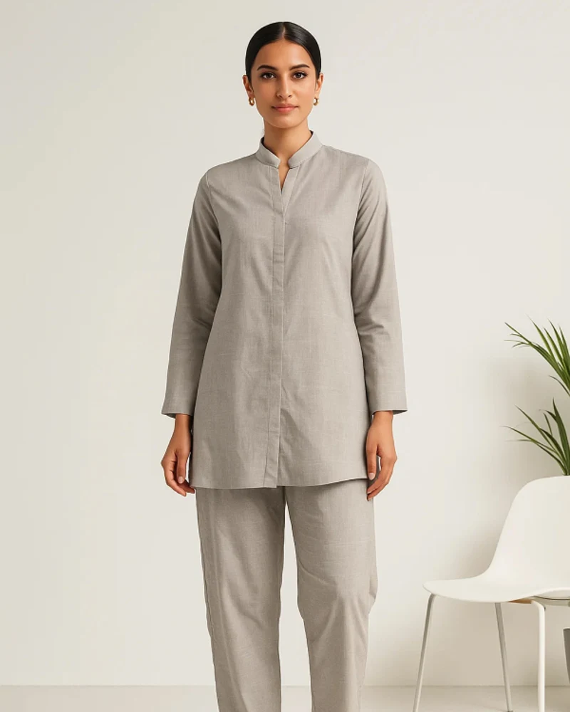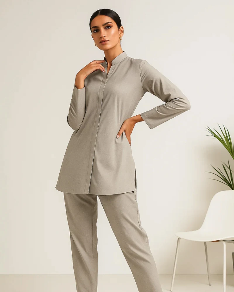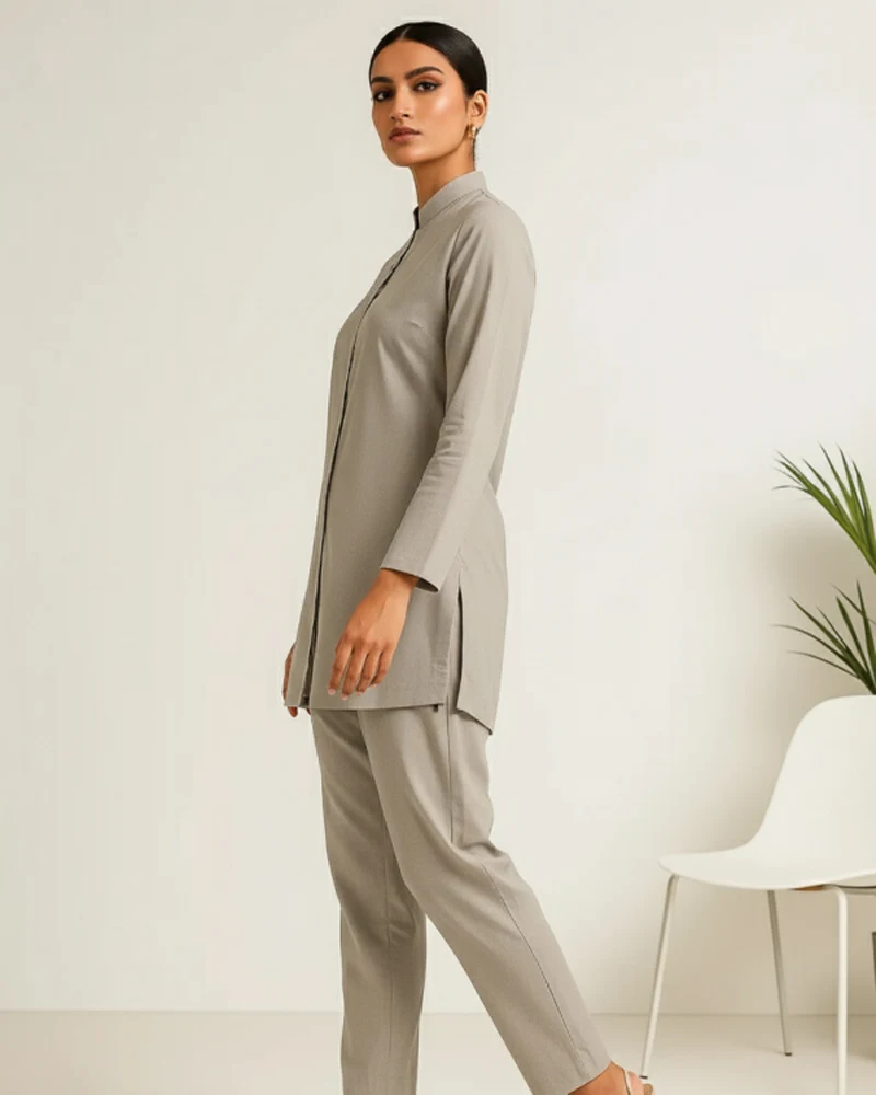 Impressa – A modern twist on the classic gray suit. Clean, understated, and confidently casual, this suit is crafted for comfort without compromising on style. Subtle textural details add a quiet uniqueness, making it equally at home on laid-back afternoons or elevated everyday outings.