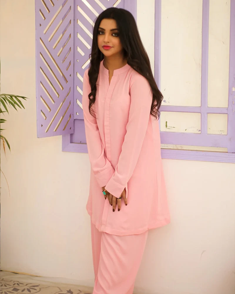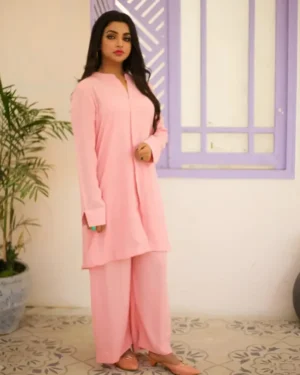 “Effortlessly chic, this adorable baby pink 2-piece cord set is the epitome of understated elegance. Crafted from soft, high-quality fabric, this set includes a relaxed-fit top and matching trousers, designed for both comfort and style. The pastel pink hue radiates a fresh and feminine charm, making it a versatile choice for casual outings or semi-formal occasions. Simple yet sophisticated, this ensemble is a wardrobe essential that ensures you look and feel fabulous